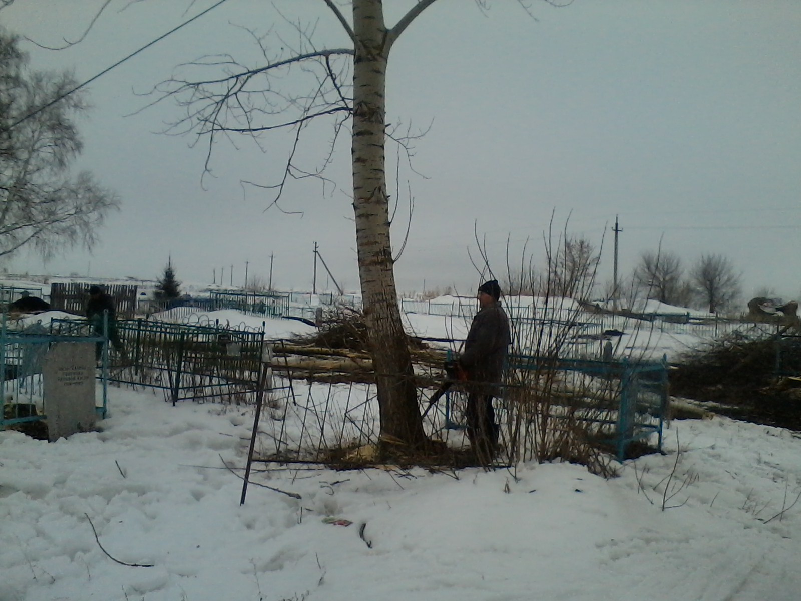 04.04 2018г. вырубка высотных деревьев на кладбище с. Каменный Брод.