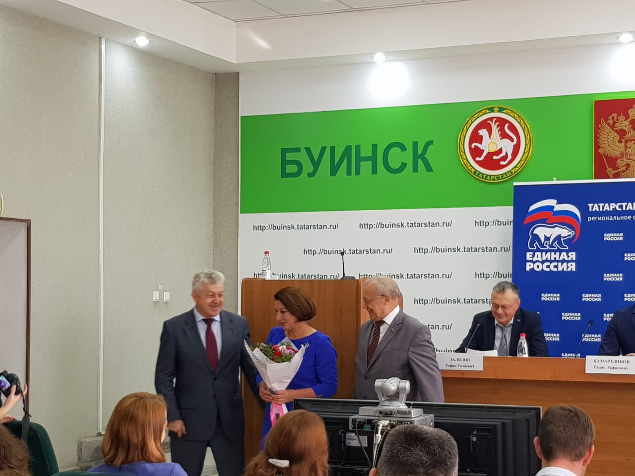 29.10.2019 Состоялась XXX конференция Буинского местного отделения партии «Единая Россия». Вручили партбилет «Единая Россия» Гимальдиновой А.Г. депутат Государственного Совета Республики Татарстан шестого созыва Ягудин Ш.Ш.; член Регионального политического совета Татарстанского регионального отделения Партии «ЕДИНАЯ РОССИЯ», ректор КГАСУ Низамов Р.К.