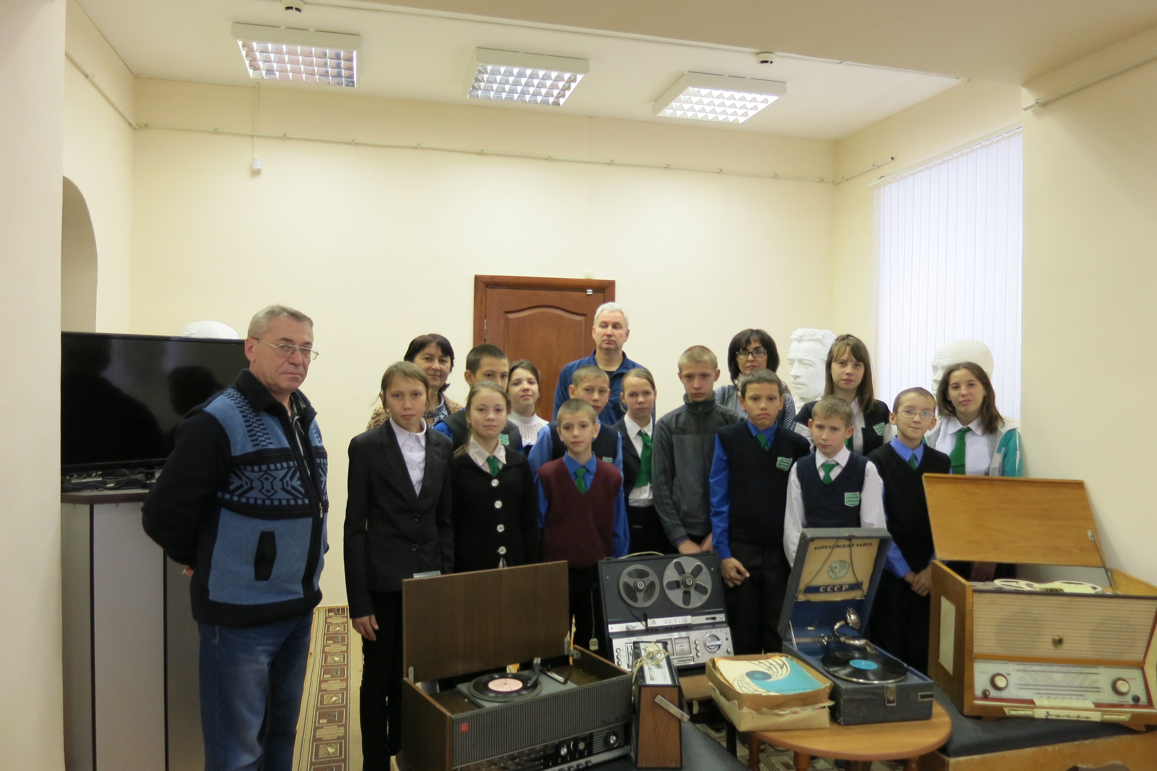 Сотрудники музея познакомили детей с ограниченными возможностями с ожившими музыкальными инструментами XX века, такие как патефон, граммофон, радиола, магнитола. Дети узнали много интересного о грампластинках, как их производили и писывали на них звук.