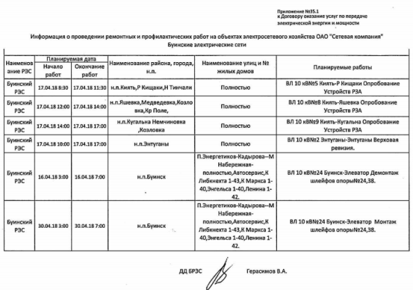 Информация о проведении ремонтных и профилактических работ на объектах электросетевого хозяйства ОАО "Сетевая компания" в период с 16.04 по 30.04.2018 года