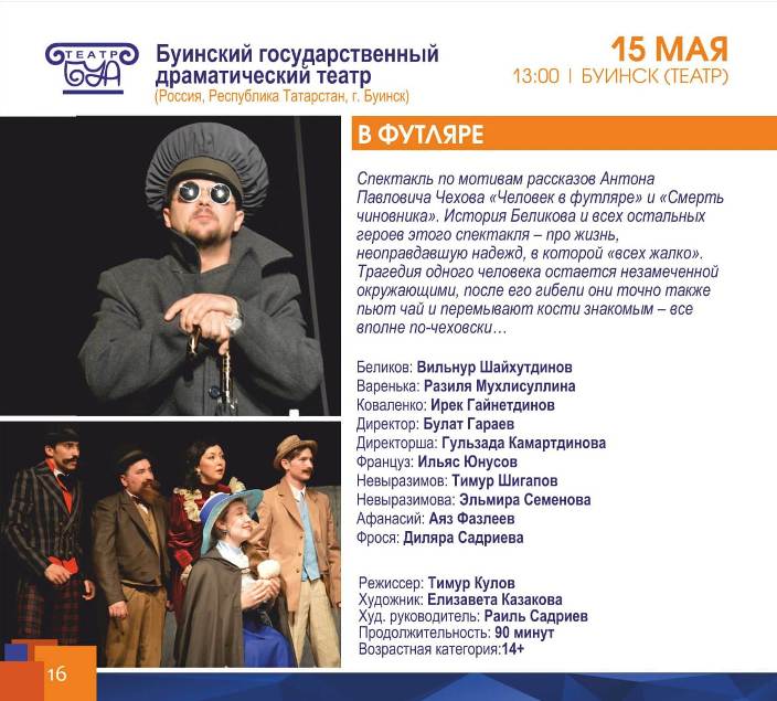 Завтра, 15 мая в Буинске стартует 2-й международный театральный фестиваль « Буа - пространство диалога». Приглашаем буинцев и гостей нашего города на спектакли. В 13.00 часов на спектакль " В Футляре" Буинского драматического театра, в 19.00 часов " Яратылмый калган ярлар" Набережночелнинского татарского драматического тетра..jpg)