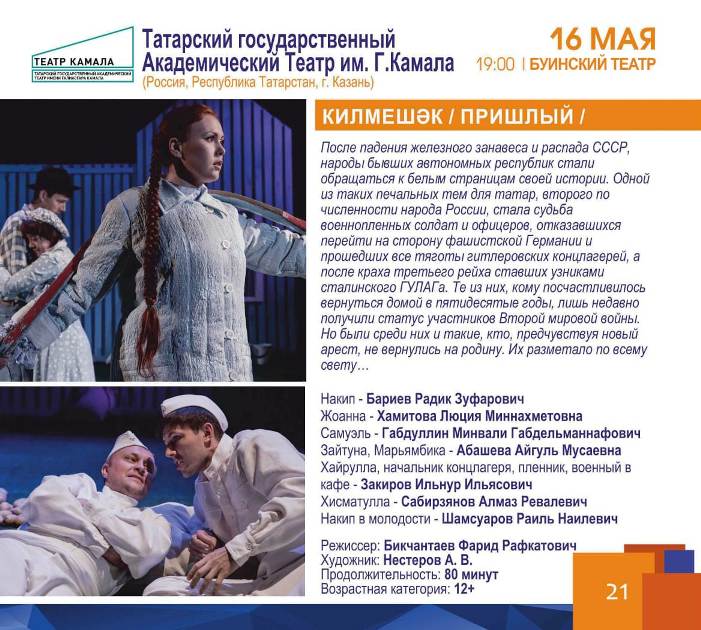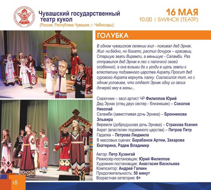Сегодня 16 мая в рамках 2 дня || Международного театрального фестиваля "БУА :ПРОСТРАНСТВО ДИАЛОГА" зрители смогут увидеть постановку «Голубка» Чувашского театра кукол и спектакль «Пришлый» театра им.Г.Камала