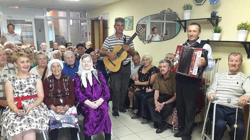 Работники культуры МБУ "Досуговый центр" и "РДК" Заслуженные артисты культуры РТ Равиль Ягафаров и Виктор Моисеев были в гостях в очень уютном, тёплом, красивом и гостеприимном доме ГАУСО "Буинский дом-интернат для престарелых и инвалидов" с концертно-развлекательной программой "Добром в добро". В ходе мероприятия были проведены различные музыкальные конкурсы, песни и танцы с участием организатора и артистов, а также жителей этого дома.