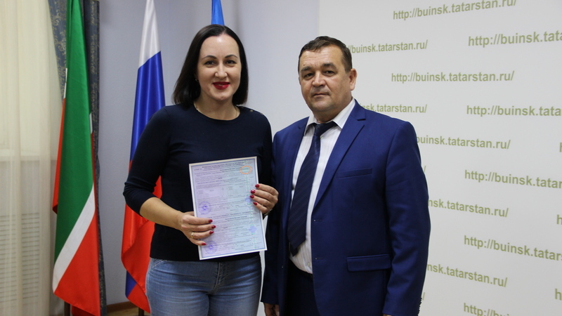 Заместитель руководителя Исполнительного комитета Буинского муниципального района Ильдус Гиззатов передал государственный жилищный сертификат дочери участницы программы Муслимы Тагировны Хуснутдиновой, её доверенному лицу Румие Назаренко. Ильдус Гашикович отметил, что получение сертификата - это шаг к новой лучшей жизни, полной приятных хлопот и счастливых мгновений, пожелал семье Хуснутдиновой радости, здоровья и долгих лет жизни.