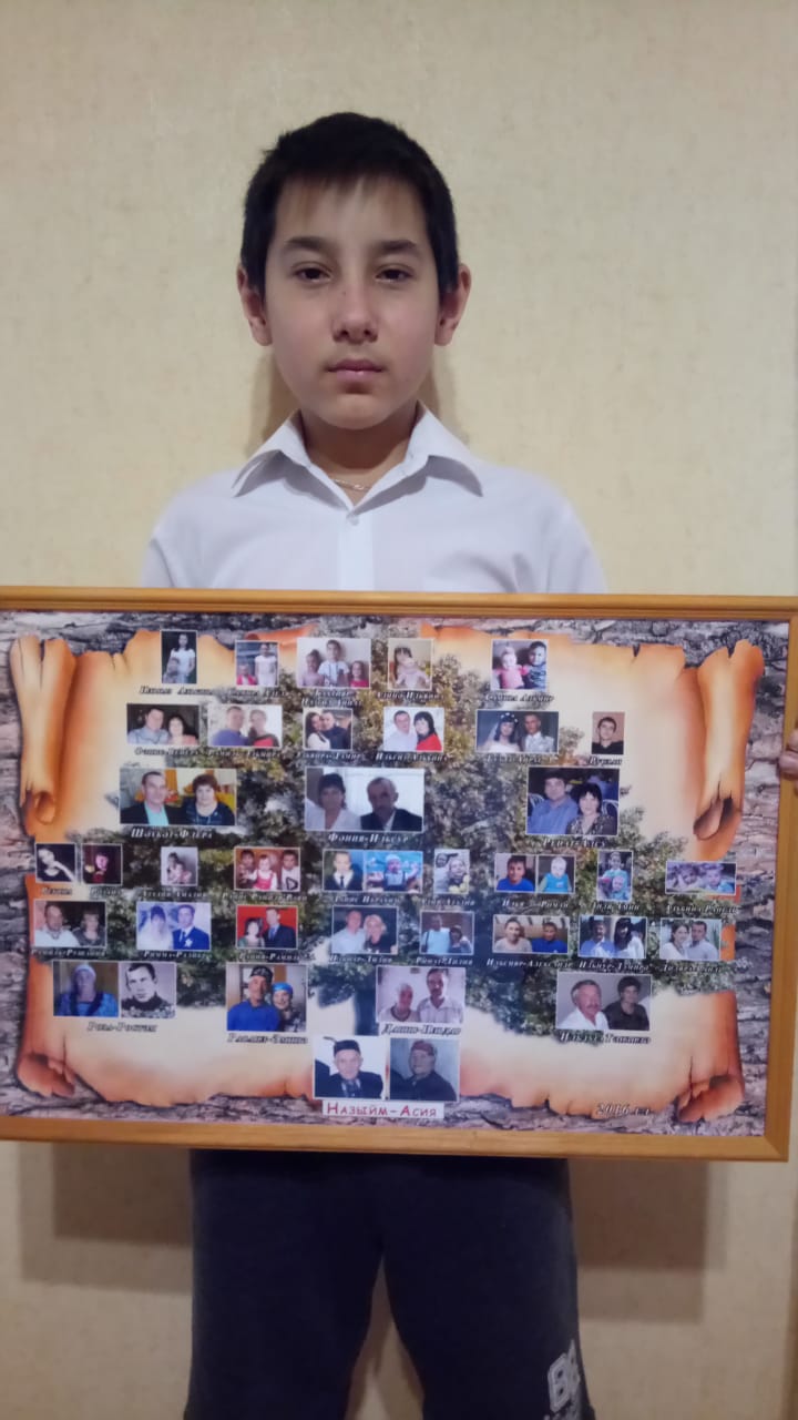 Второй участник – Хайретдинов Ранис, ученик седьмого класса МБОУ «СОШ №1 УИОП г. Буинска». Он кропотливо собирал информацию о своих предках. Его генеалогическое древо начинается с 1700 года, в нем отражены десять поколений.