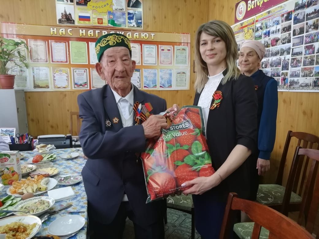 Наталья Храмова от имени исполкома Буинского отделения Партии вручила подарочные наборы со словами: «Спасибо вам большое, дорогие наши ветераны. Вы совершали не просто подвиги, вы не только защищали Родину, вы вершили великую историю и боролись за мирную и счастливую жизнь. Спасибо вам за ваш героизм и самоотверженность, за ваше мужество и за наш покой». Альбина Булатова поздравила пенсионеров, пожелав им долгих лет жизни, здоровья и счастья.