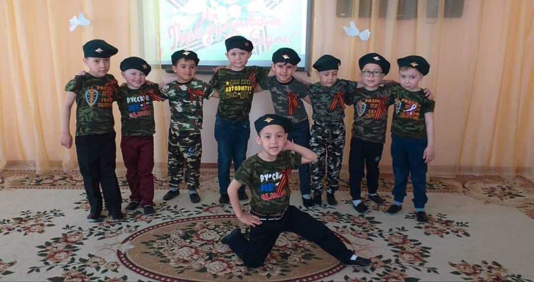 9 мая — День Победы — святой для каждого из нас праздник и мы, сегодняшние граждане страны, обязаны передать память о Победе будущим поколениям. В МБДОУ "Алтынчеч" из года в год проводятся мероприятия, посвященные празднованию Великой Победы, и этот год не был исключением. Накануне 9 мая в детском саду прошел праздник, посвященный дню Великой Победы. Праздник был подготовлен с целью формирования у детей знаний о Великой Отечественной войне, обогащения знаний дошкольников об истории своей страны, воспитания чувства гордости за героизм нашего народа, воспитания устойчивого интереса к армии. В программу мероприятия вошли песни о празднике победы, о мире, о солдатах, танцы, стихи о войне, о бессмертном подвиге защитников Отечества.
