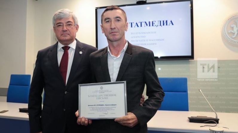 Награждение 50 лучших сотрудников СМИ Татарстана прошло сегодня в Республиканском агентстве по печати и массовым коммуникациям «Татмедиа». Среди награжденных и коллектив “Буинск-информ”. Руководитель республиканского агентства по печати и массовым коммуникациям «Татмедиа» Айрат Зарипов вручил Благодарственное письмо коллективу «Буинск-информ» в лице директора Гакиля Камалетдинова за активное участие в информационном освещении финала VII национального чемпионата «Молодые профессионалы» (WORLDSKILLS RUSSIA) 2019 года.