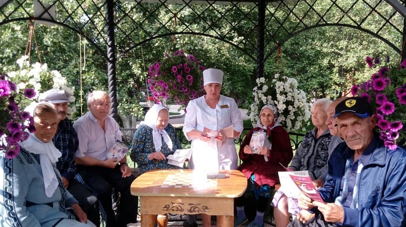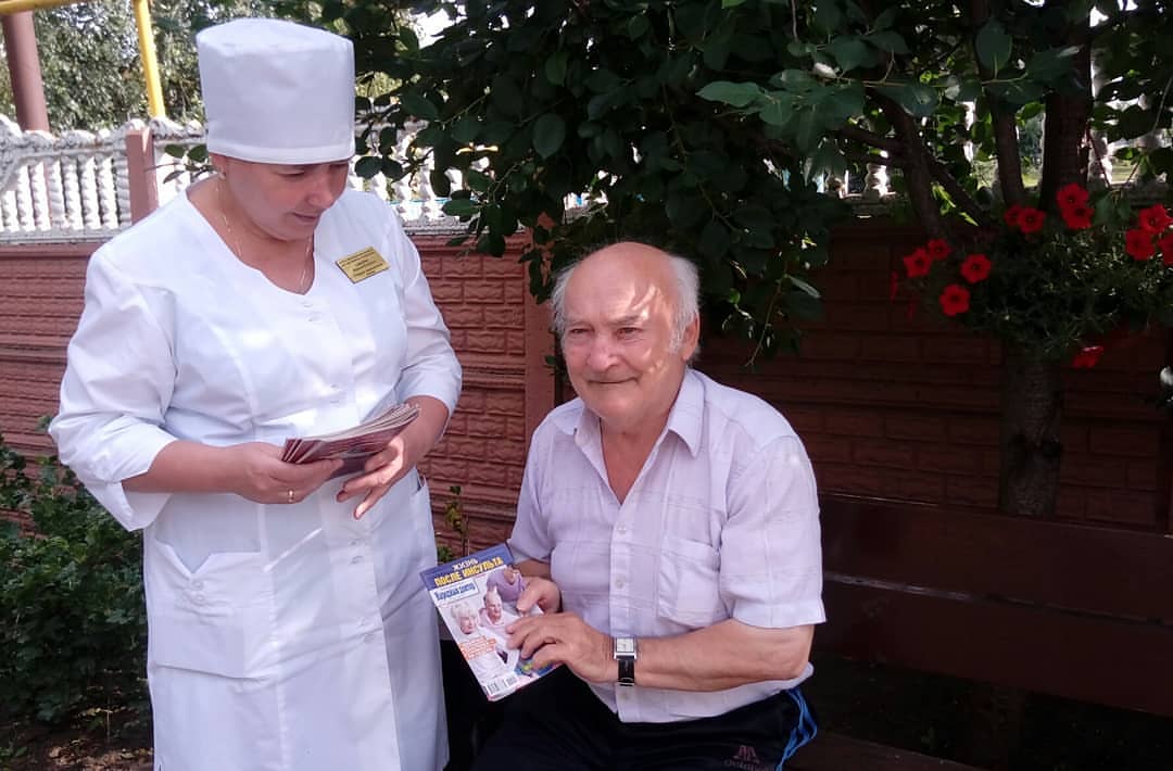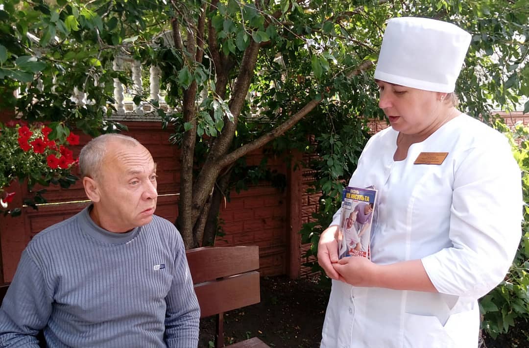 Восстановление больных после инсульта – сложный комплекс, который сочетает как прием назначенных врачом препаратов, так и массаж, гимнастику, тренировку зрения, слуха, разработку мышц и различные терапии. На всем протяжении восстановительного периода после инсульта нужно тщательно следить за верхней границей артериального давления больного, чтобы вовремя принять меры в случае опасного повышения. Принимать меры по восстановлению каждой утраченной функции организма после инсульта необходимо сразу же, как только состояние больного стабилизируется. При комплексном подходе к этой задаче двигательная активность возвращается к пациенту уже через 6 месяцев, а речевой навык — в течение 2–3 лет. Старшая медицинская сестра Марина Сайкина ответила на все вопросы получателей социальных услуг, а также раздала журнал «Народный доктор» - жизнь после инсульта. «Поддерживайте боевой дух, и не сомневайтесь в результате: он обязательно будет!» - подчеркнула она.