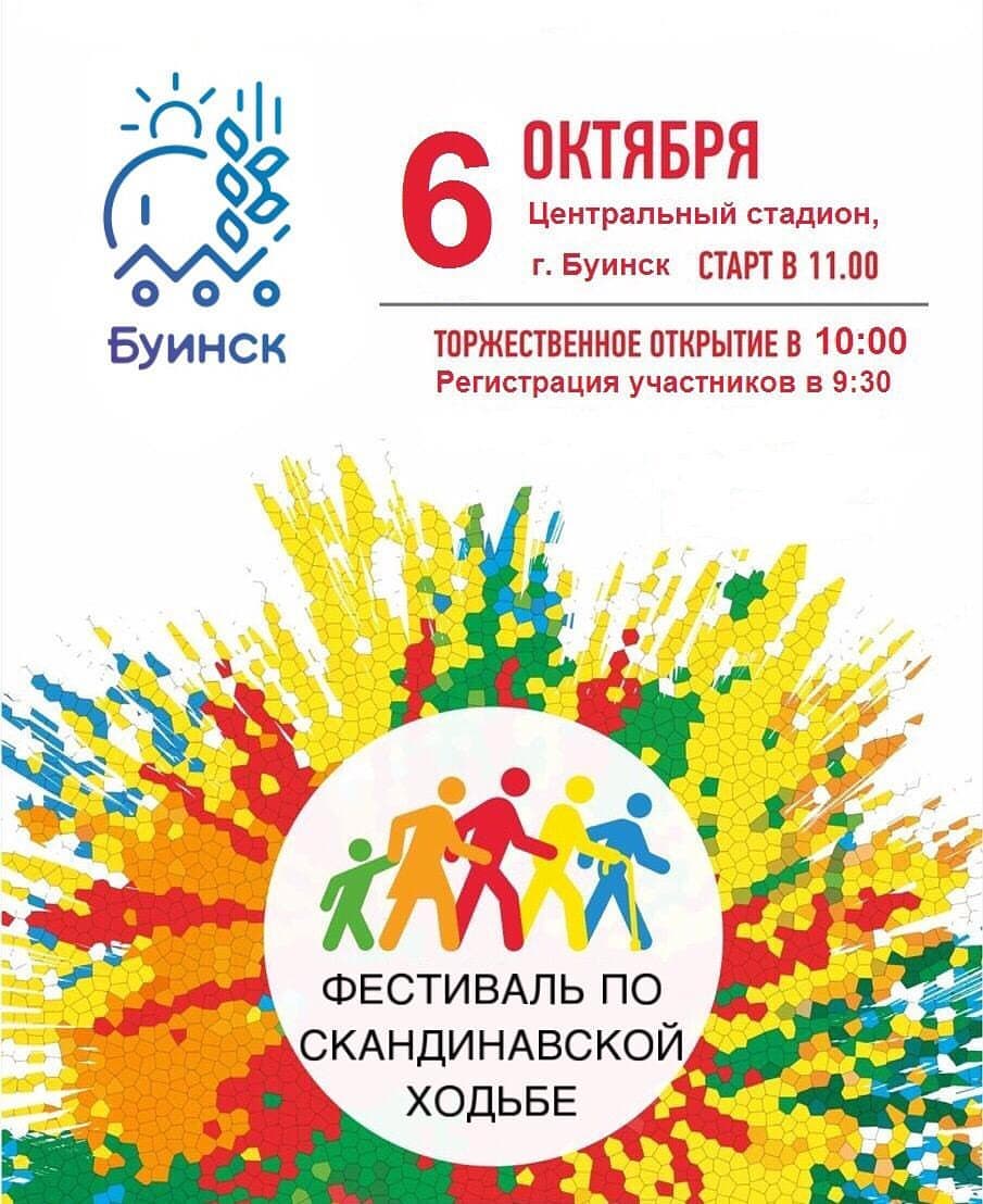 В Буинске 6 октября пройдёт фестиваль скандинавской ходьбы, приуроченный ко Дню пожилых. В программе обучающие мастер-классы по скандинавской ходьбе с инструкторами: - Наталией Безлюдной-врача-терапевта - Наталией Вавиловой- менеджером фитнес центра. Регистрация участников в 9:30 Мероприятие будет проходить на Центральном стадионе города Буинска. Наличие скандинавских палок приветсвуется. Также вечером в 18:00 пройдёт мастер-класс по аквааэробике в СК Дельфин, в продолжении аквадискотека. Дополнительная информация по тел. 89274151338