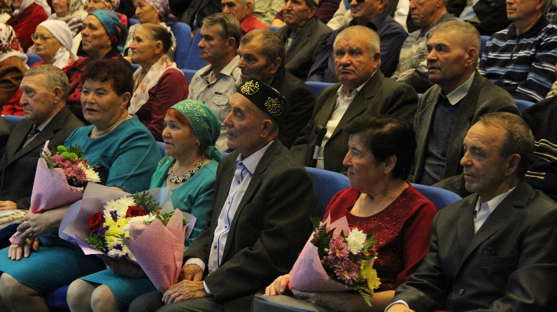 Он назвал представителей этого поколения золотым фондом района. Ранис Рафисович поблагодарил сидящих в зале пожилых людей за вклад в развитие экономики района. Пожелал здоровья и долголетия. Затем на сцену поднялись золотые пары – Николай и Валентина Волковы, Владимир и Галина Пайгуновы, Абрар и Розалия Садыковы из Буинска, Зоя Насейкина из Буинска, Вагиз Хусаинов, Ирек Хуснутдинов из Бикмуразово, которым 1 октября исполнилось 70 лет. Все получили подарки и цветы.