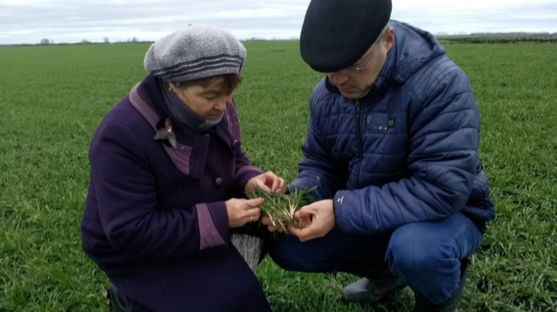 С целью увидеть своими глазами состояние озимых вместе с Анной Степановной мы направились в общество «Киятское». Главный агроном Рафик Нигматуллин встретил нас на поле озимой пшеницы, расположенном недалеко от деревни Козловка. Площадь в 404 гектара словно зеленый ковер.