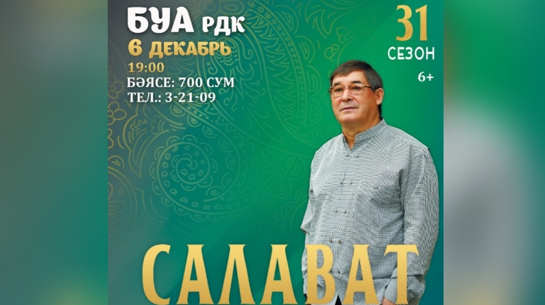 6 декабря 2019 года в 19.00 на сцене районного Дома культуры заслуженный артист РФ, народный артист РТ Салават Фатхутдинов представит зрителям новую 31-ю концертную программу.