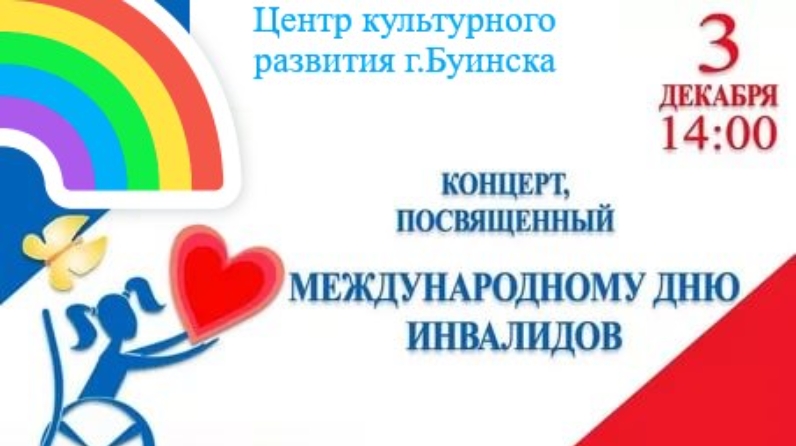 3 декабря в Центре культурного развития г.Буинска состоится благотворительный концерт участников художественной самодеятельности районного дома культуры, посвященный международному Дню инвалида. Каждый, кто придет на мероприятие, сможет пожертвовать любую сумму в поддержку людей с ограниченными возможностями по здоровью. Все вырученные средства будут направлены на лечение заслуженного работника культуры Татарстана Фании Исхаковой. Также для детей в этот день в фойе центра будут организованы мастер-классы по художественно – прикладному искусству.
