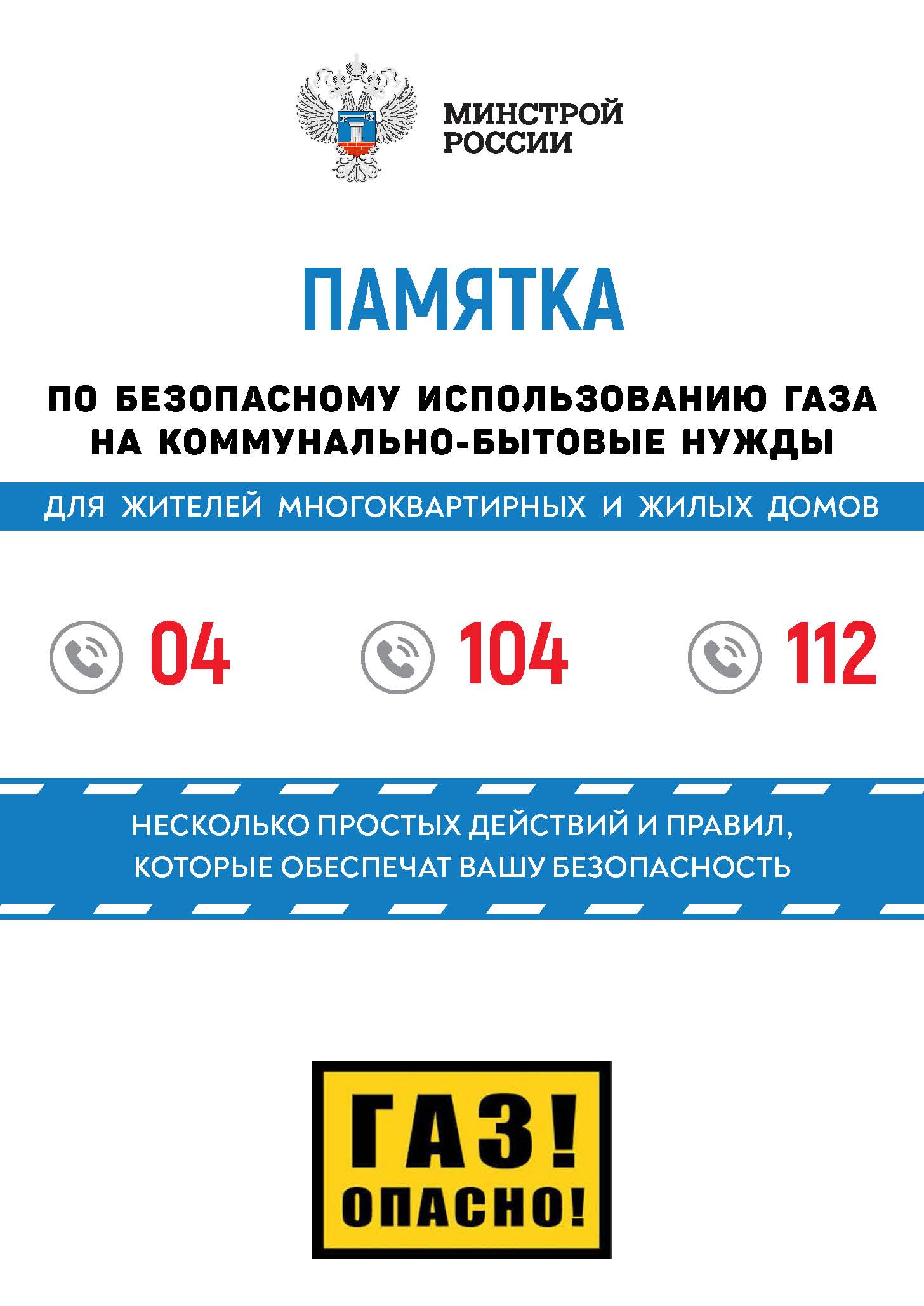 В памятке даны основные рекомендации по безопасному использованию газового оборудования. Разъяснено, что за внутридомовое газовое оборудование ответственны УО, ТСЖ, ЖК или ЖСК, а за внутриквартирное газовое оборудование - собственники квартир. Описан порядок действий в случае, если вы почувствовали запах газа.