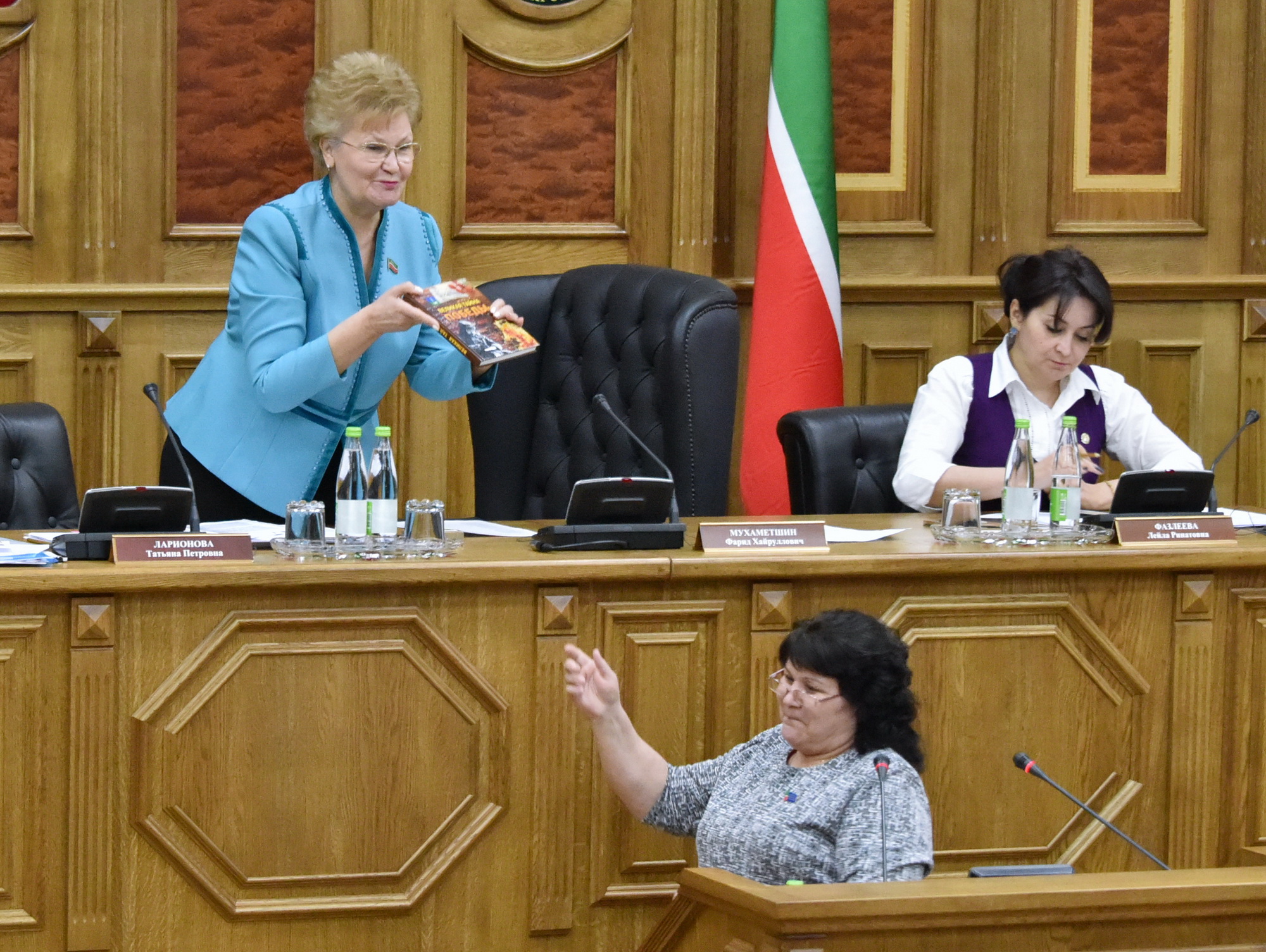 Вчера, 5 февраля в здании Государственного Совета Республики Татарстан на заседании женщин-депутатов "Мэрхэмэт - Милосердие" прошла презентация социально-гуманитарного проекта "У войны не женское лицо".. На презентацию были приглашены Председатель Госсовета Фарид Мухаметшин, руководители объединений женщин-депутатов в муниципальных районах, представители республиканских министерств и ведомств, военных комиссариатов, общественных организаций. Провела презентацию заместитель Председателя Госсовета, руководитель объединения «Мэрхэмэт – Милосердие» Татьяна Ларионова. Буинский муниципальный район на заседании представляла Глава Нурлатского сельского поселения Буинского района Гульчачак Булатова.