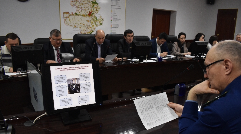 Открывая заседание, к участникам обратился руководитель района Ранис Камартдинов. В частности, он отметил, что одним из наиболее серьезных вызовов для развития нашей страны остается коррупция. Она наносит ущерб устойчивому развитию экономики и правопорядку, затрагивает все отрасли и сферы управления. Многое делается в республике, в нашем районе по вопросам противодействия коррупции, однако ее проявления все же имеют место быть. Так, в текущем году по республике правоохранительными органами выявлено более 800 преступлений коррупционной направленности, размер ущерба по которым превысил 6,5 млрд. рублей. Выявлено 3226 нарушений при прохождении государственной и муниципальной службы, противодействия коррупции в сферах землепользования, закупок товаров, выполнения работ, оказания услуг, использования государственного и муниципального имущества, бюджетной сфере, а также защиты имущественных прав граждан, организаций и государства. Далее присутствующие просмотрели фильм «Татарстан без коррупции».