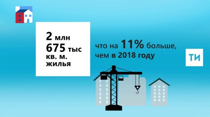 Всего за 2019 год в республике было введено 2,6 млн кв. метров жилья, что на 11% больше, чем годом ранее. Обеспеченность жильем на одного жителя РТ достигла 27,3 кв. метра.
