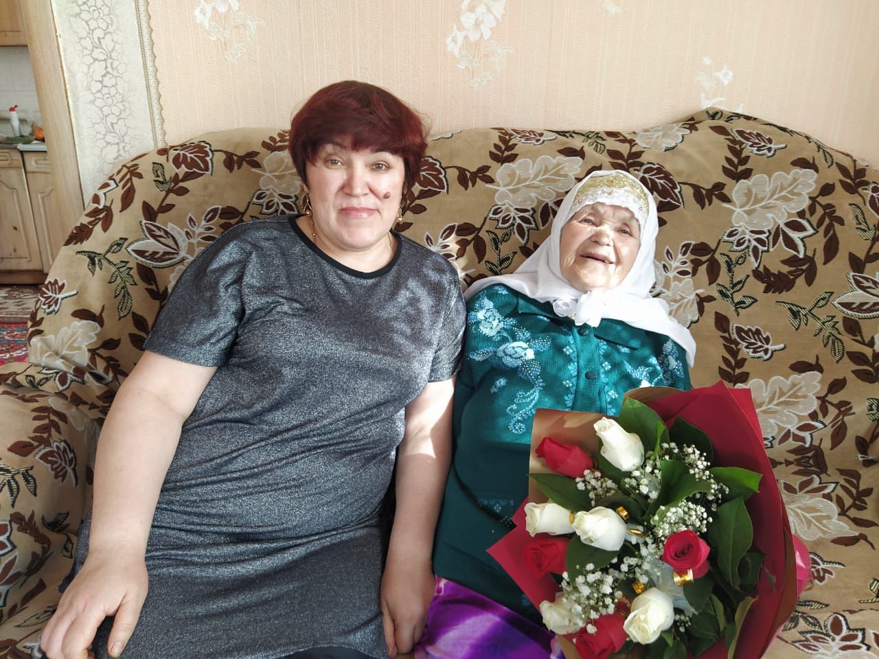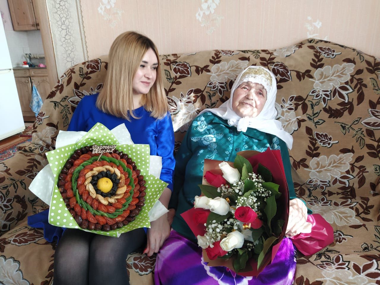 Поздравить ветерана, долгожителя с юбилейной датой пришли руководитель района Ранис Камартдинов начальник управления социальной защиты населения района Лейла Камалова.