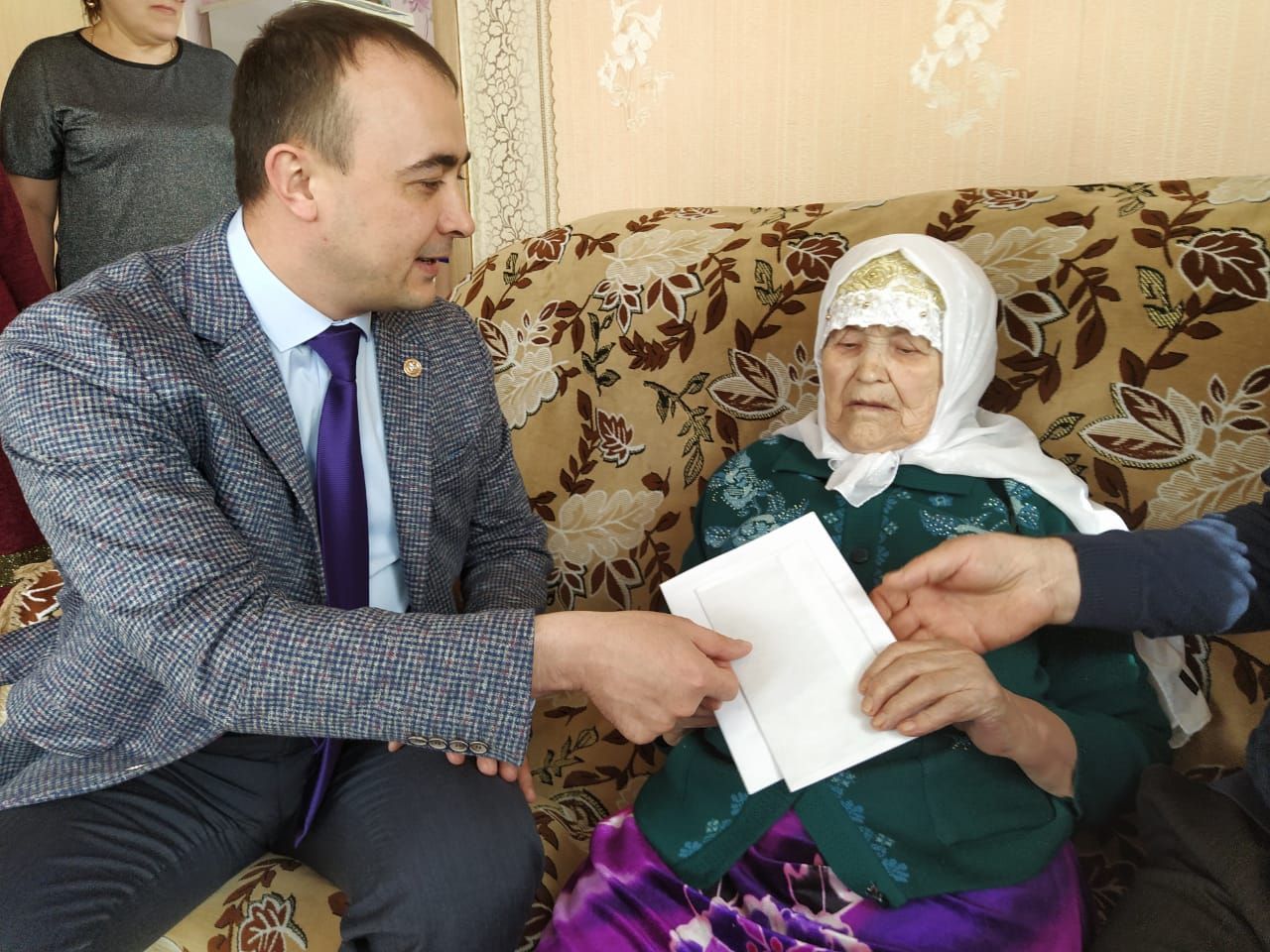 Ранис Рафисович тепло поздравил труженицу тыла, пожелал хорошего самочувствия, заботы и внимания близких, вручил поздравление Президента России В.Путина и юбилейную медаль в честь юбилея Победы.