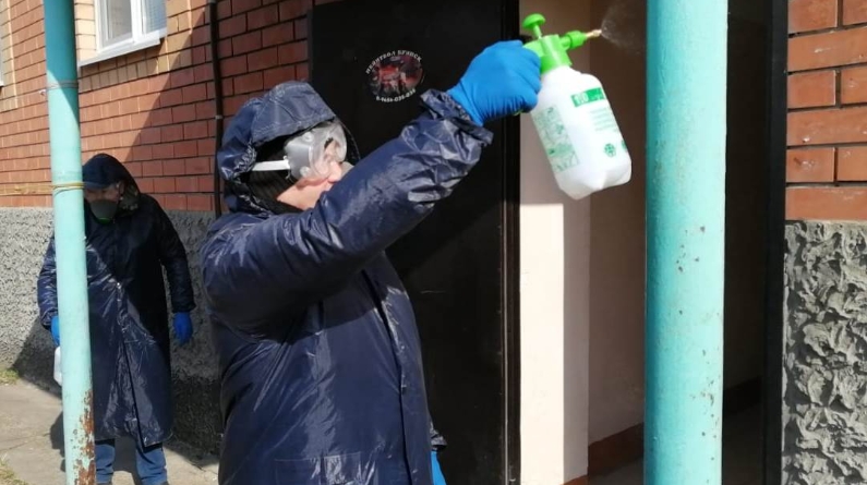 Бригада привозит с собой все необходимое. Раствор хлора делают на месте, рабочие надевают специальную одежду и приступают к обработке. Управляющая компания на прошлой неделе завершила первый этап обработки своих домов хлорным раствором.