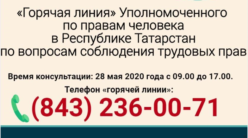 28 мая 2020 года с целью оказания правовой поддержки и обеспечения соблюдения прав граждан Уполномоченный по правам человека проводит «горячую линию» по вопросам защиты трудовых прав граждан республики.