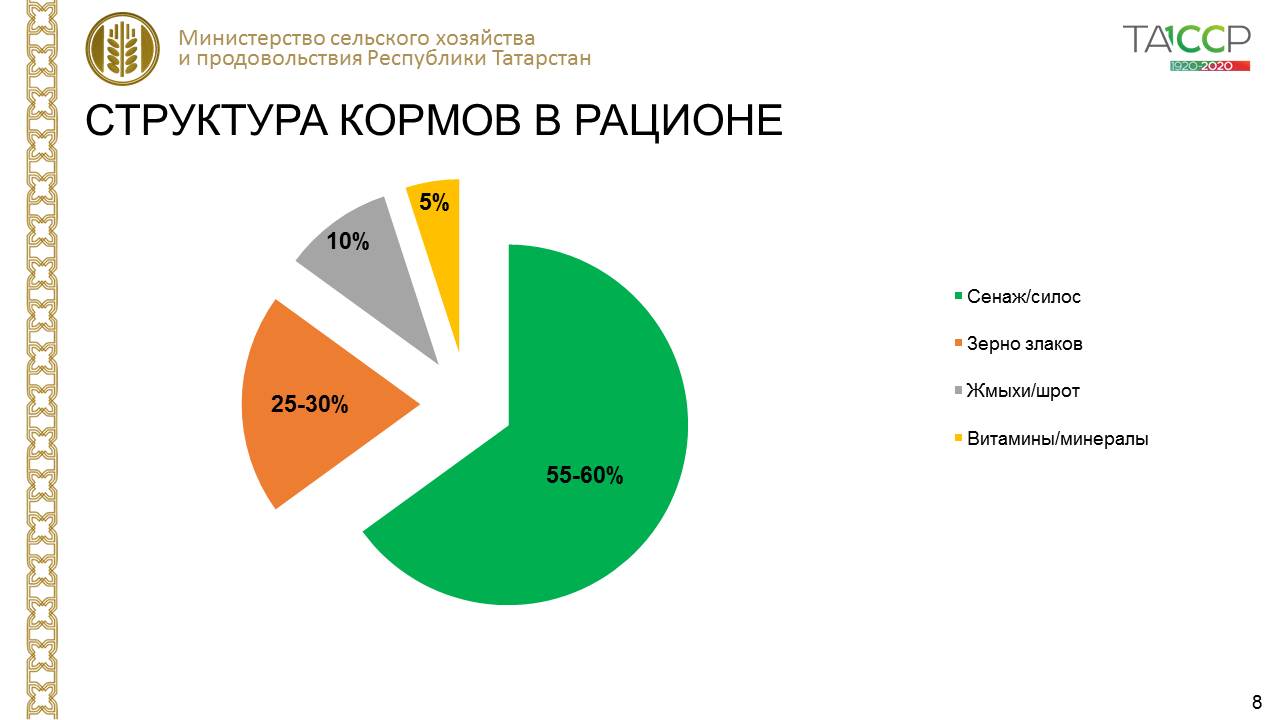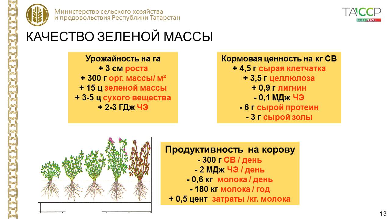 «При планировании кормовой базы мы должны придерживаться научно-обоснованной структуры соотношения кормов в рационе животных. Такое соотношение кормов обеспечивает высокую продуктивность и хорошее здоровье животных», - пояснил Ленар Гарипов.