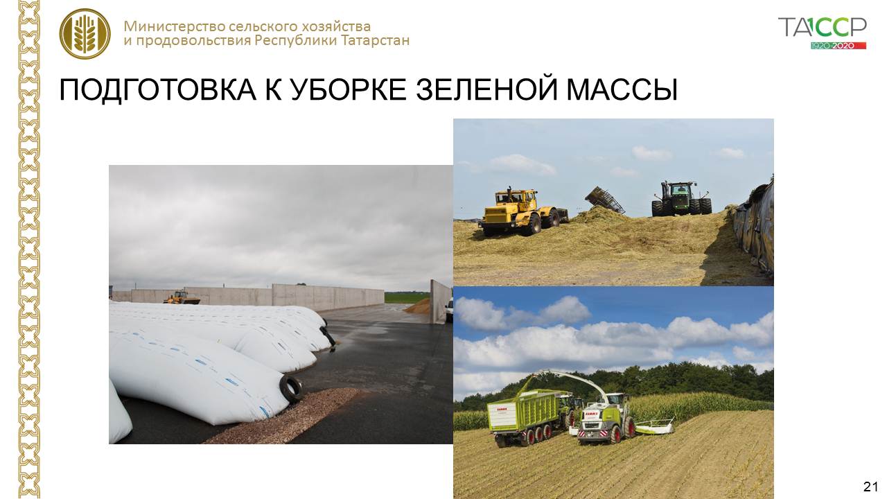 В завершение мероприятия Марат Зяббаров обратился к районам с просьбой максимально серьезно и ответственно подойти к организации заготовки кормов, начиная с подготовки кормоуборочной техники, силосных траншей, своевременной закладки зеленой массы, определения питательности и обеспечения потребности животных в кормах. «Качественный корм позволит Вам сэкономить средства и повысит рентабельность производства молока и мяса», - отметил глава Минсельхозпрода РТ.