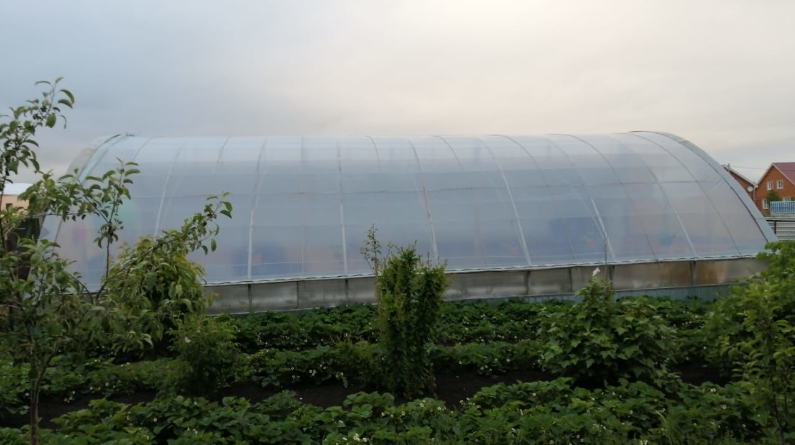 Сооружение в садовом хозяйстве Заббаровых выполнено в виде полутеплицы и имеет площадь 80 кв. м. Ильфат и Гузель Заббаровы уже многие годы занимаются садоводством, а в этом году завершили строительство новой теплицы, где полив осуществляется автоматически, кроме того она самостоятельно проветривается. Ильфат сделал ее своими руками. Как говорит хозяин, раньше западные ветра часто повреждали теплицу, это негативно влияло и на культуры. Конструкция полутеплицы дает растениям больше светового дня. Для покрытия каркаса использовал специальный полиэтилен.