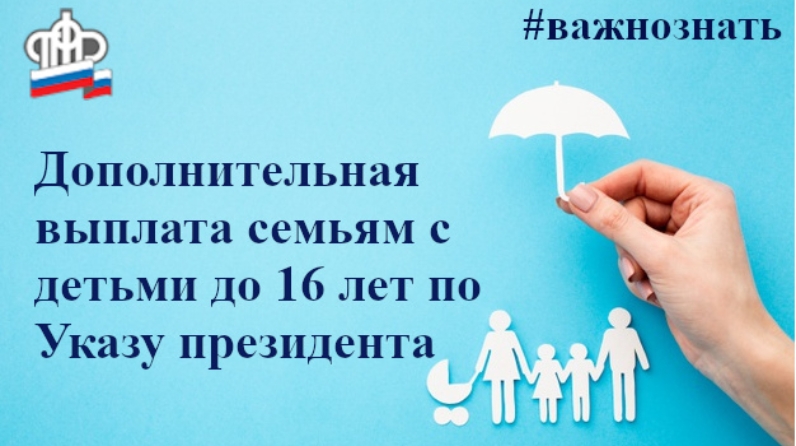 Управление Пенсионного фонда России в г.Буинске Республики Татарстан (межрайонное) сообщает, что в июле начнет единовременную выплату родителям, усыновителям, опекунам и попечителям детей до 16 лет, которая составит 10 тыс. рублей на каждого ребенка. Средства будут дополнительно предоставлены к ежемесячной выплате 5 тыс. рублей на детей до 3 лет или единовременной выплате 10 тыс. рублей на детей от 3 до 16 лет, которые с апреля и июня перечисляются семьям согласно указу Президента РФ от 7 апреля 2020 года № 249 «О дополнительных мерах социальной поддержки семей, имеющих детей».