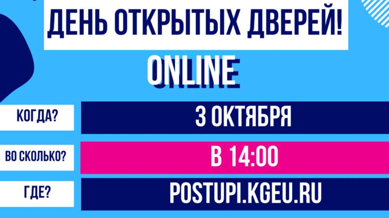 В условиях предупреждения распространения коронавирусной инфекции на территории РФ День открытых дверей КГЭУ будет проводиться дистанционно, в ОНЛАЙН-режиме. Перейти на сайт мероприятия можно по ссылке postupi.kgeu.ru.