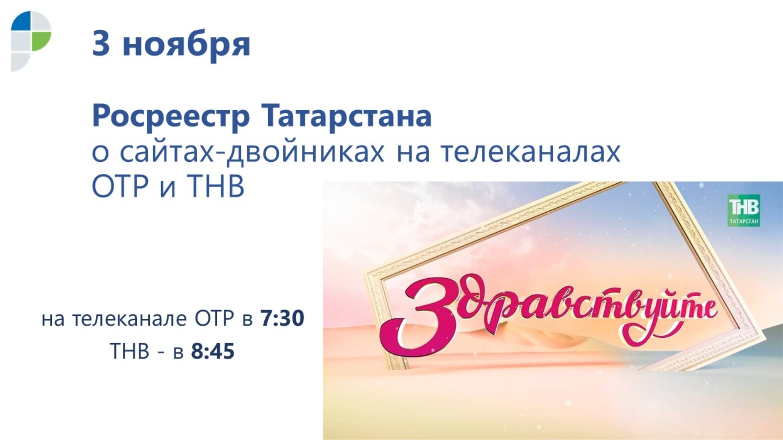 3 ноября на телеканалах ОТР и ТНВ выйдет программа «Здравствуйте», утренним гостем которой станет заместитель руководителя Управления Росреестра по Республике Татарстан Артем Костин. Эксперт Росреестра Татарстана расскажет телезрителям, почему стоит опасаться сайтов-двойников Росреестра и Федеральной кадастровой палаты и как отличить подлинный сайт от фейкового.
