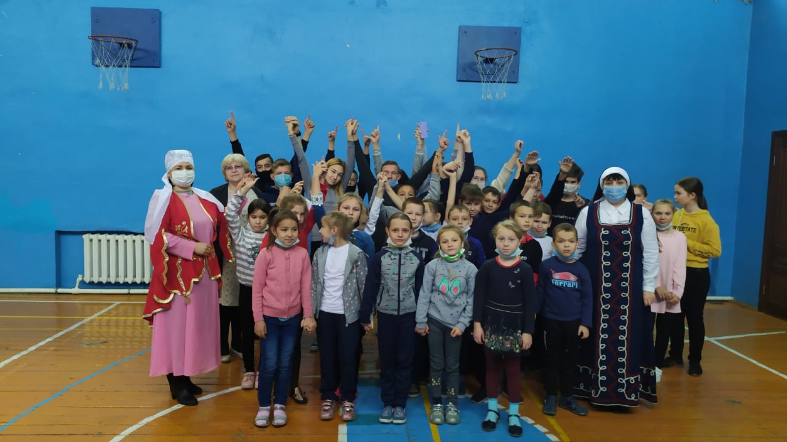 В связи с этим специалисты КЦСОН «Гармония» в Буинском муниципальном районе в рамках акции «Хоровод мира» провели праздничное мероприятие, посвященное Дню народного единства в Альшиховской средней общеобразовательной школе.