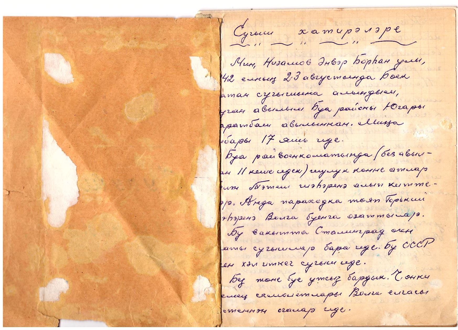 В селе Янга аул Буинского района Республики Татарстан живет человек, который не понаслышке знает о войне – фронтовик-учитель Анвар Бурганович Низамов. 15 октября ему исполнилось 96 лет. Несмотря на возраст, те трудные годы, по его признанию, он помнит до мельчайших подробностей. Фронтовой путь от родной деревни Верхний Наратбаш до Праги отмечен ветераном на географической карте красным карандашом, а воспоминания записаны в простой школьной тетрадке, которую Анвар Бурганович хранит уже больше 70 лет.