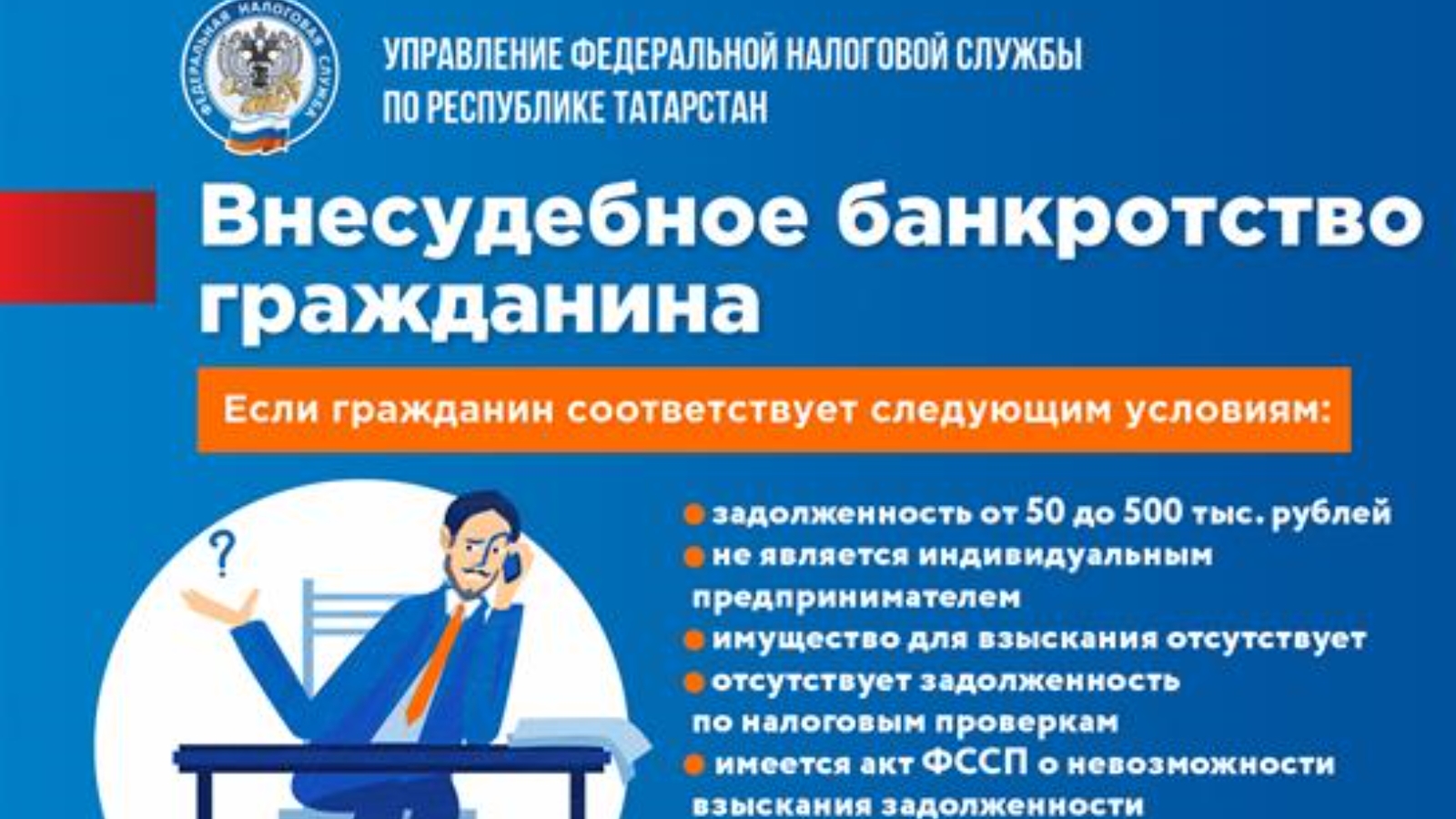 Татарстанцев могут признать банкротом без суда. Новое понятие «Внесудебное банкротство гражданина» действует с 1 сентября 2020 года, сообщает пресс-служба МФЦ по РТ.