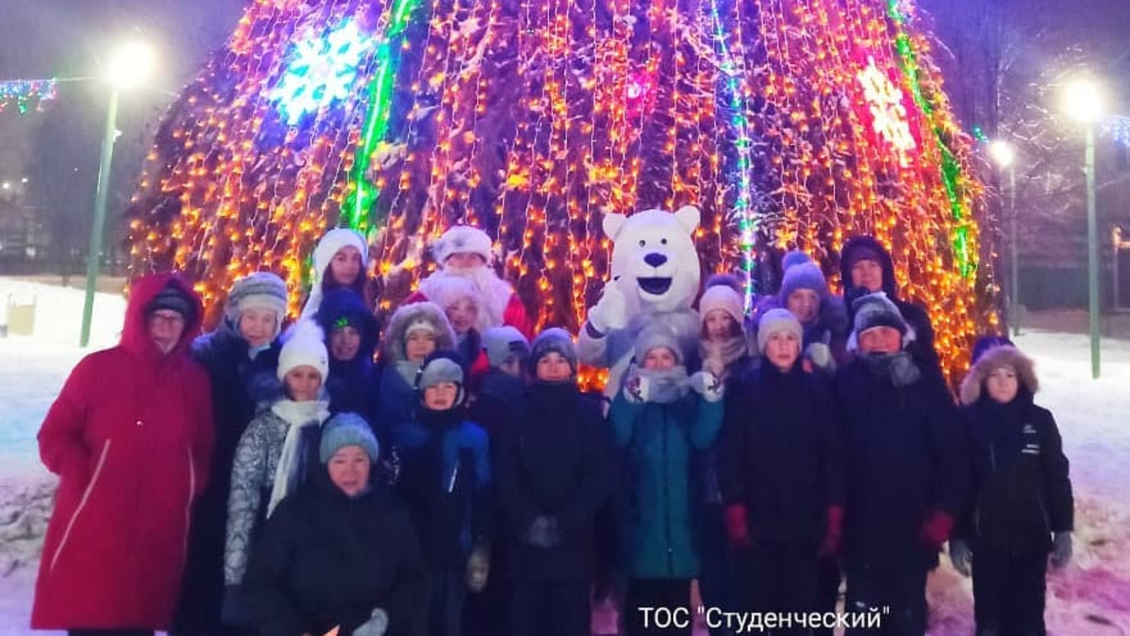 На праздничном мероприятии встретились жители ТОС "Студенческий". Ребята и взрослые водили хоровод, играли игры и рассказывали стихи. В гости на праздник заглянул белый медведь и веселая метелица. Отличившиеся ребята были награждены грамотами и получили памятные подарки. Ни кто не ушёл без сладкого угощения.