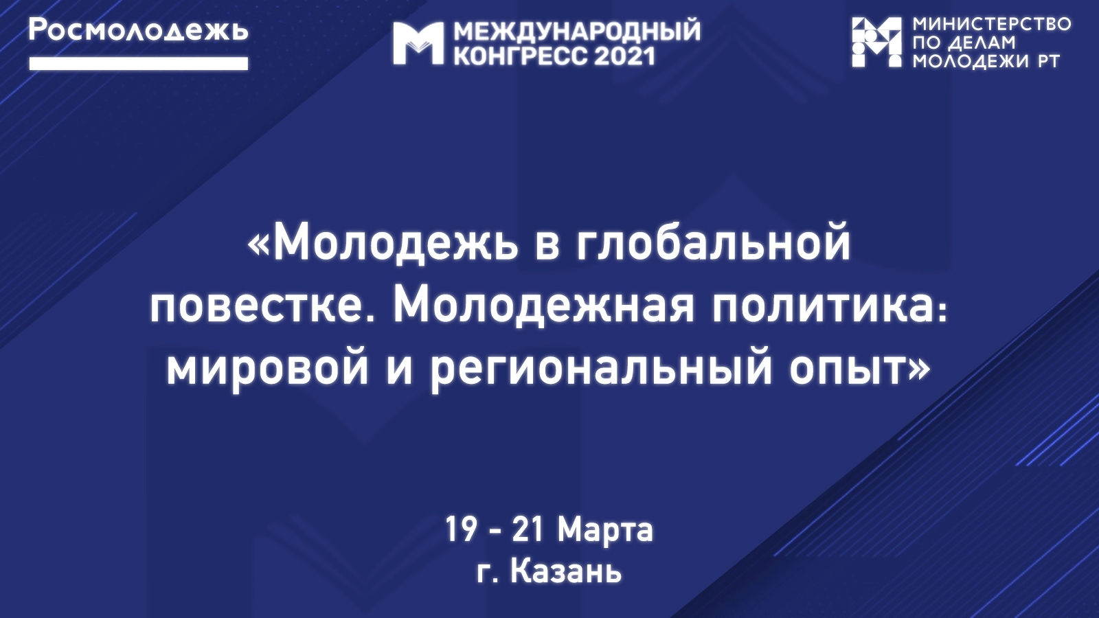 С 19 по 21 марта Казань станет центром притяжения лучших мировых и российских ученых в области молодежной политики, которые выступят на международном конгрессе «Молодежь в глобальной повестке. Молодежная политика: мировой и региональный опыт».