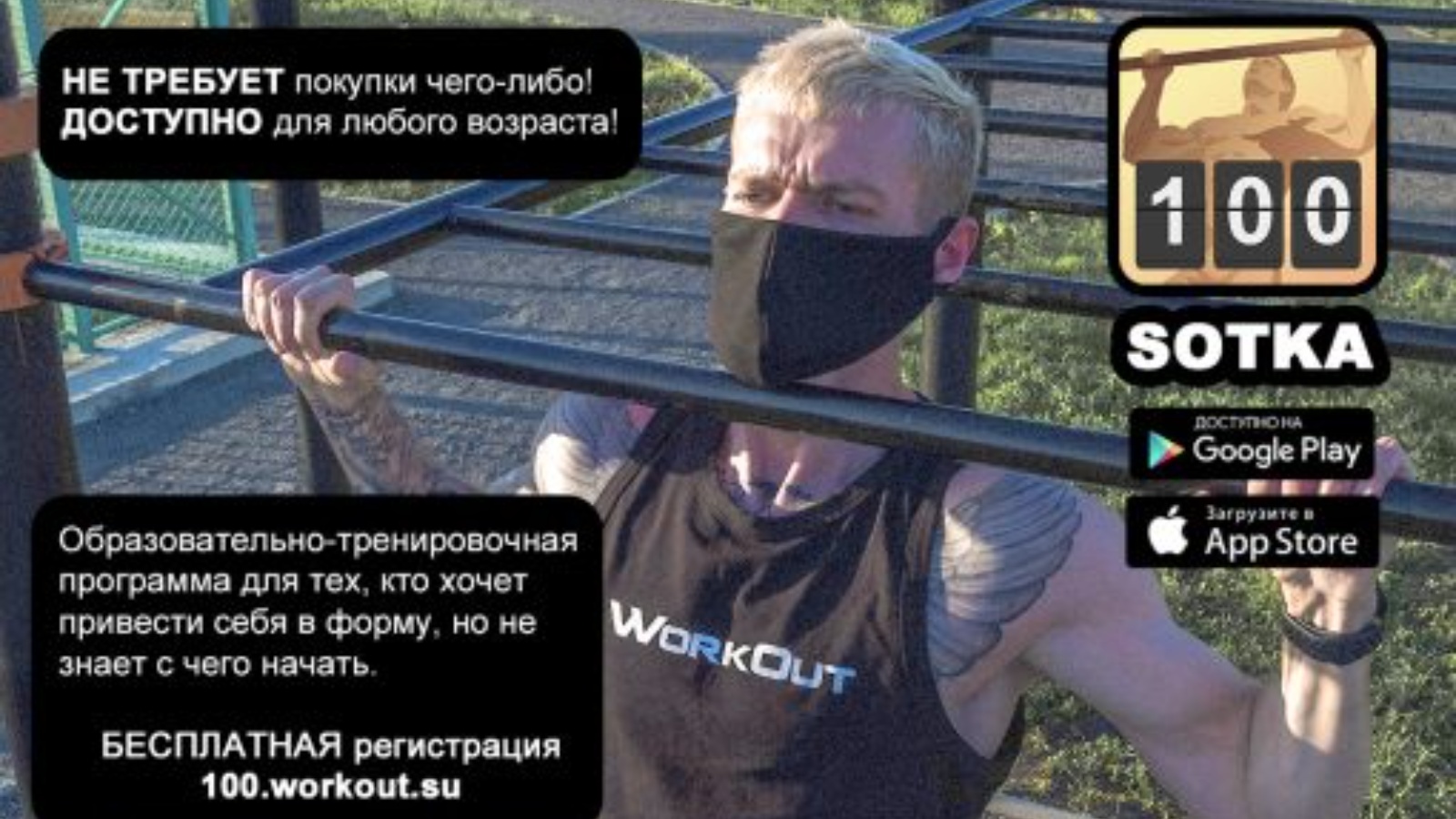 Программа располагается на своём интернет-сайте – 100.workout.su. Кроме того, программу можно пройти через приложение на своём смартфоне, скачав её из магазина приложений Google Play или AppStore. Сайт программы абсолютно бесплатный, а мобильные приложения доступны без взимания платы за базовые функции программы на протяжении всего прохождения программы.