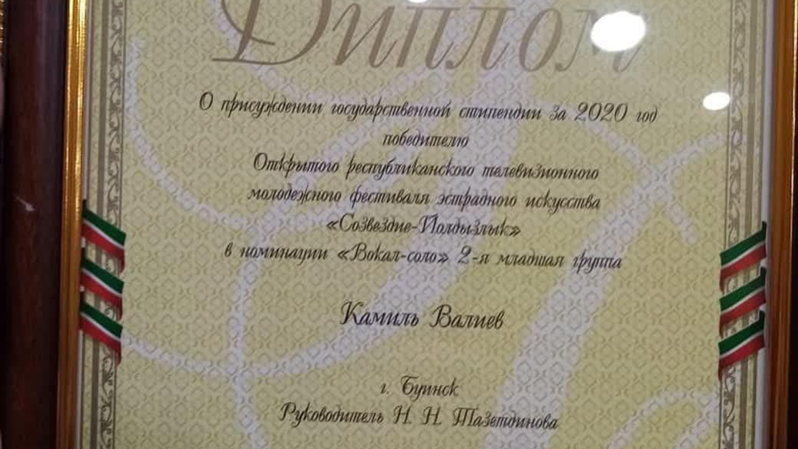 Торжественная церемония вручения государственных стипендий лауреатам Ежегодного открытого республиканского телевизионного молодежного фестиваля эстрадного искусства «Созвездие-Йолдызлык» 2020 года прошла в Кабинете Министров Республики Татарстан. В числе приглашенных были и буинцы. Камиль Валиев и его руководитель - преподаватель школы искусств при управлении образования Буинского района Наиля Тазетдинова приняли участие в торжественном мероприятии. Заместитель Премьер-министра РТ Лейла Фазлеева вручила Камилю его заслуженную награду.