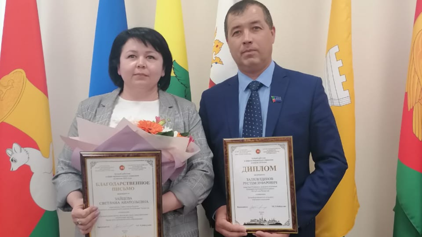 С гордостью отметим, что буинцы в числе награждаемых. Заслуженные награды заместителю главы города Светлане Зайцевой и главе Бик-Утеевского сельского поселения Рустему Залялетдинову вручил Председатель Ассоциации "Совет муниципальных образований Республики Татарстан" Экзам Губайдуллин.