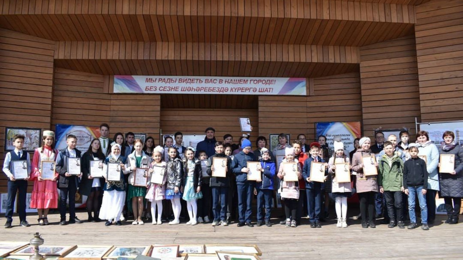 Чуть позже награды учащимся школ вручил Глава района Ранис Камартдинов. Мероприятие сопровождалось инсценировкой произведений Г. Тукая, исполнением самой популярной из его произведений- стихотворением "И Туган тел... " Каждый мог сфотографироваться с почтовыми кукламикуклами.