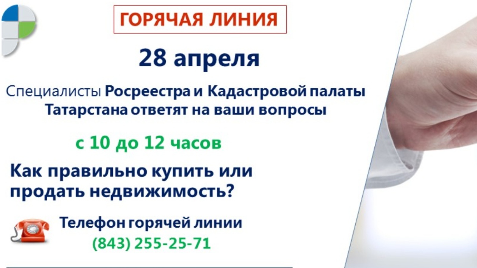 28 апреля с 10 до 12 часов Росреестр Татарстана и Кадастровая палата проведут горячую линию для татарстанцев, покупающих и продающих недвижимость.