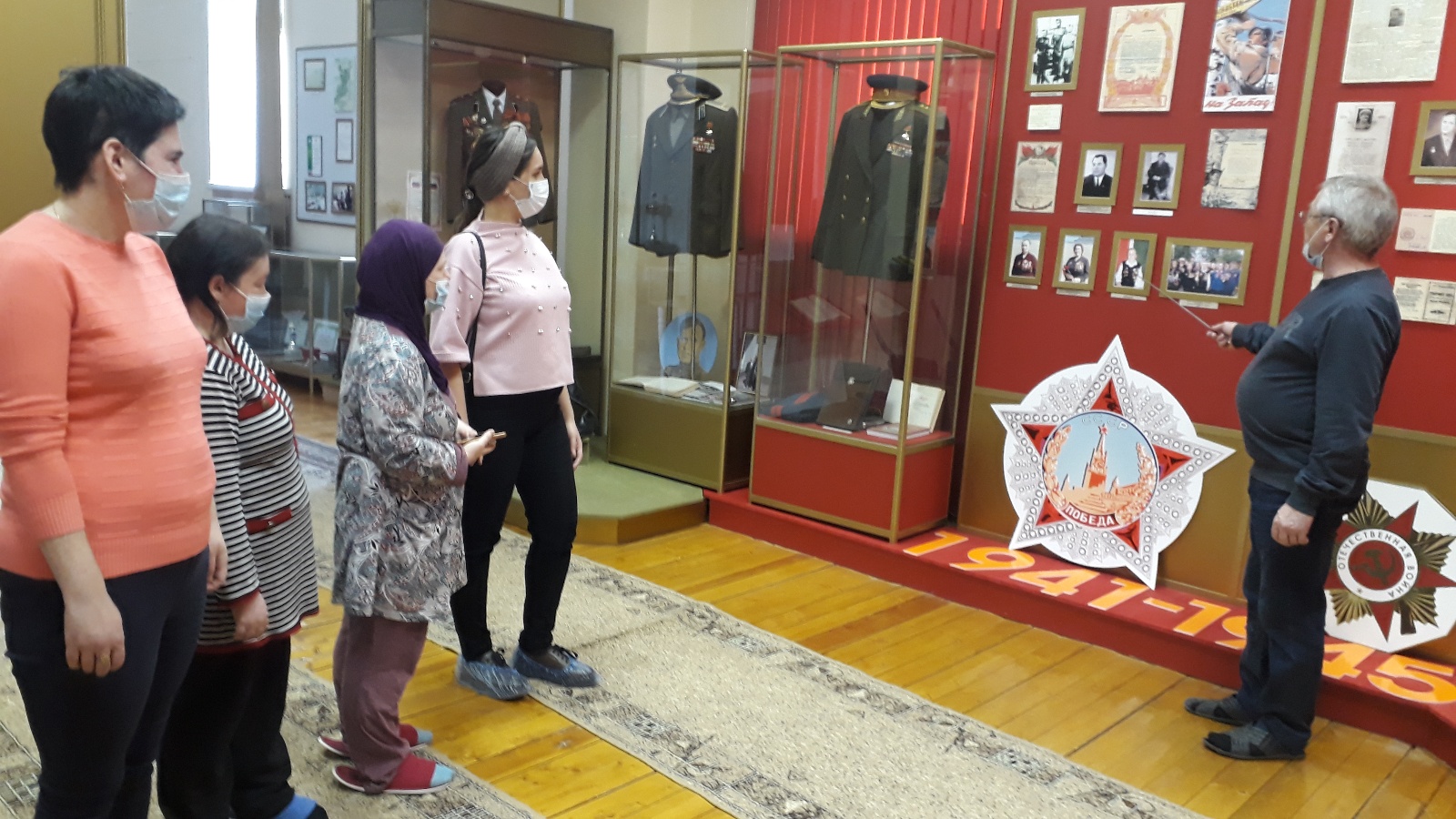 В преддверии празднования 76–й годовщины Победы в Великой Отечественной войне специалист отделения социальной помощи семье и детям комплексного центра социального обслуживания населения «Гармония» Буинского района организовала экскурсию в краеведческий музей для граждан с ментальными нарушениями.