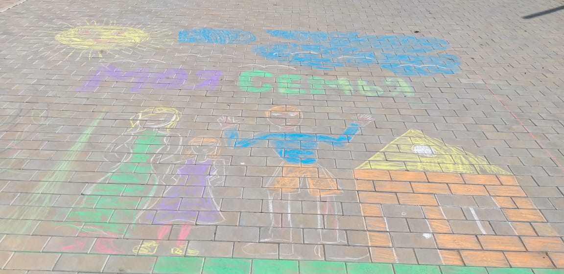 Это яркое событие проходило в прекрасный солнечный день. Дети с удовольствием воплощали на асфальте свои задумки, каждый рисуя, думал о своем доме, семье, родителях. Цветные мелки передавали настроение детей. Все очень старались! Время пробежало быстро, конкурс закончился, а счастливые ребята оставили частичку доброты своих сердец в живописи на асфальте.