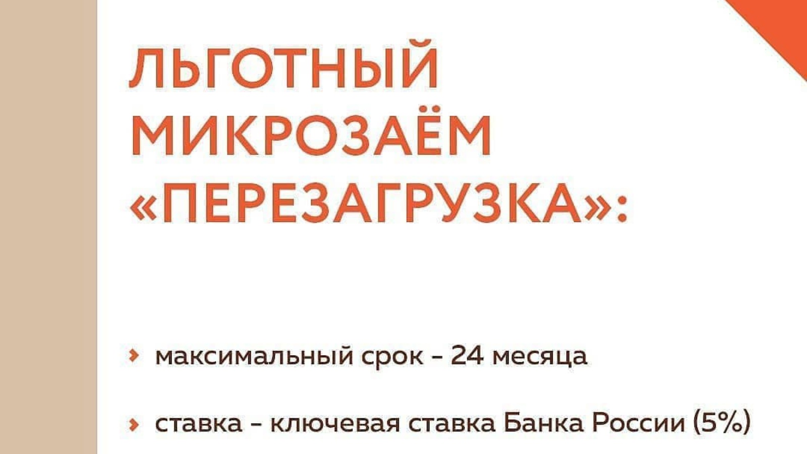 С 1 июня льготный микрозаём «Перезагрузка» доступен на максимальный срок - 24 месяца по ключевой ставке Банка России (5%).
