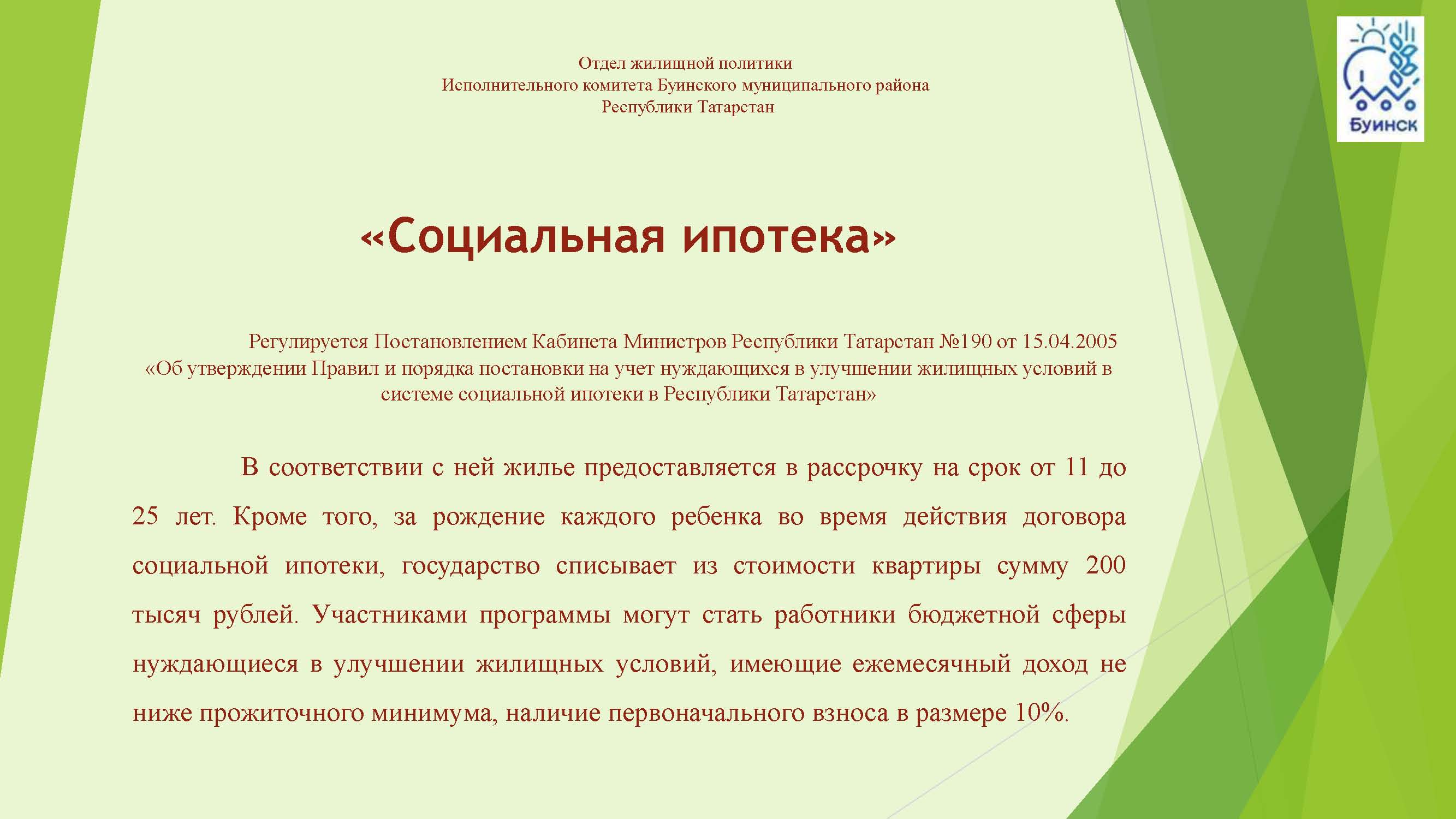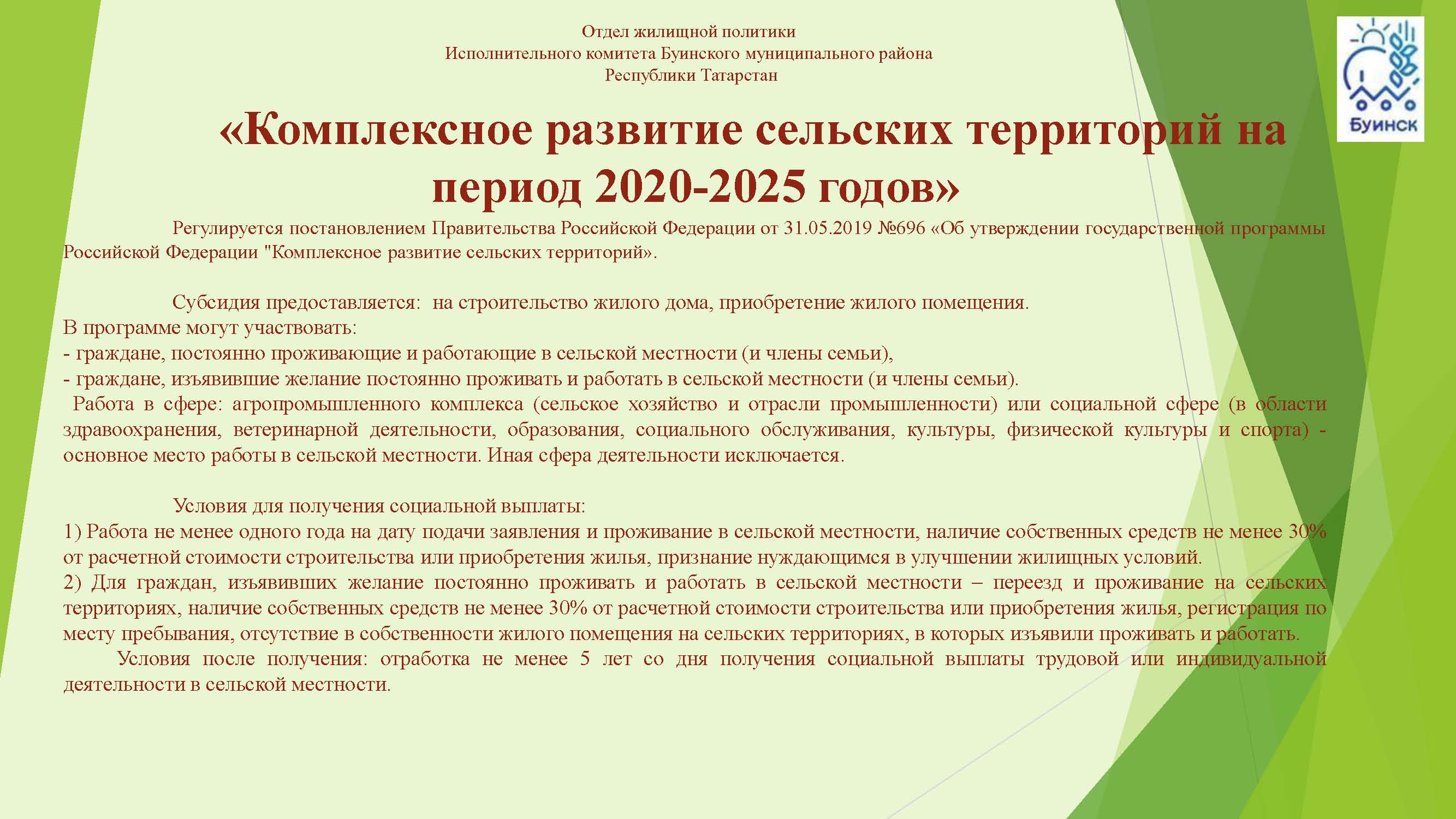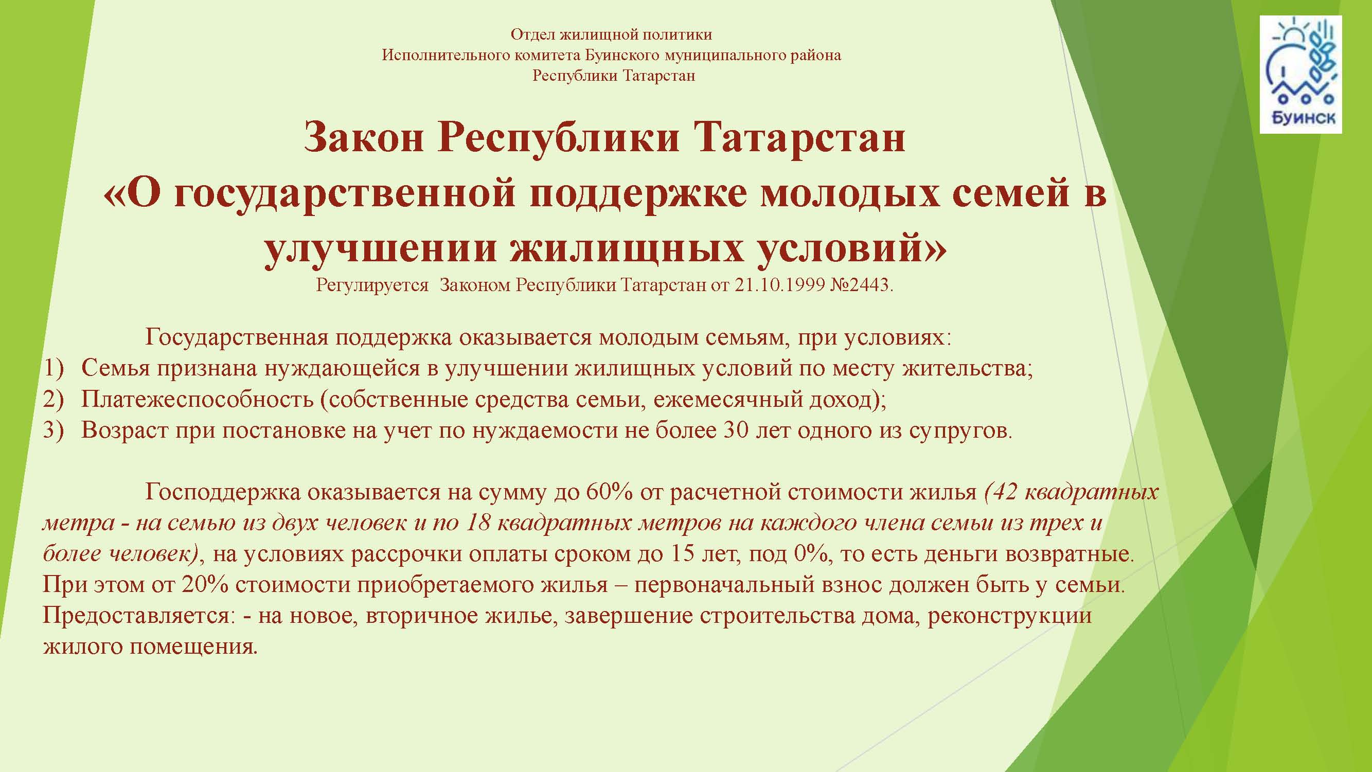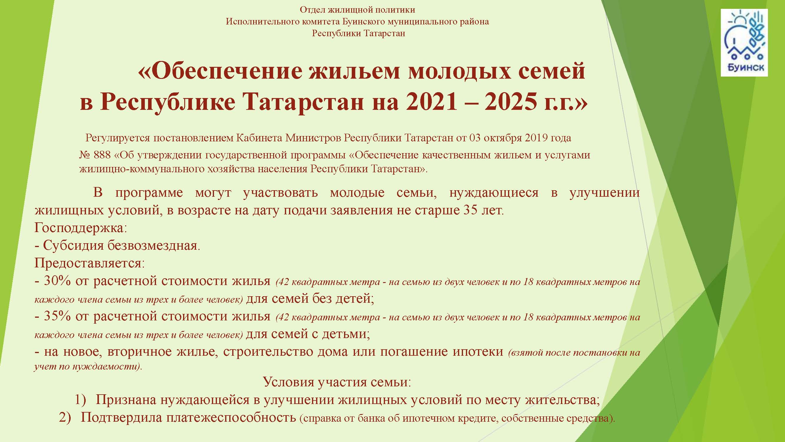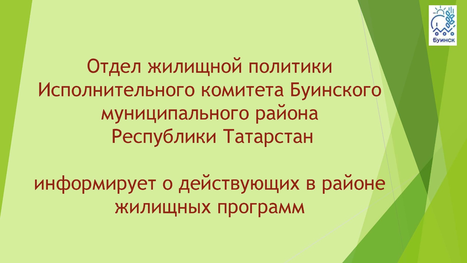 Исполнительный комитет Буинского муниципального района РТ информирует о действующих в районе жилищных программах.