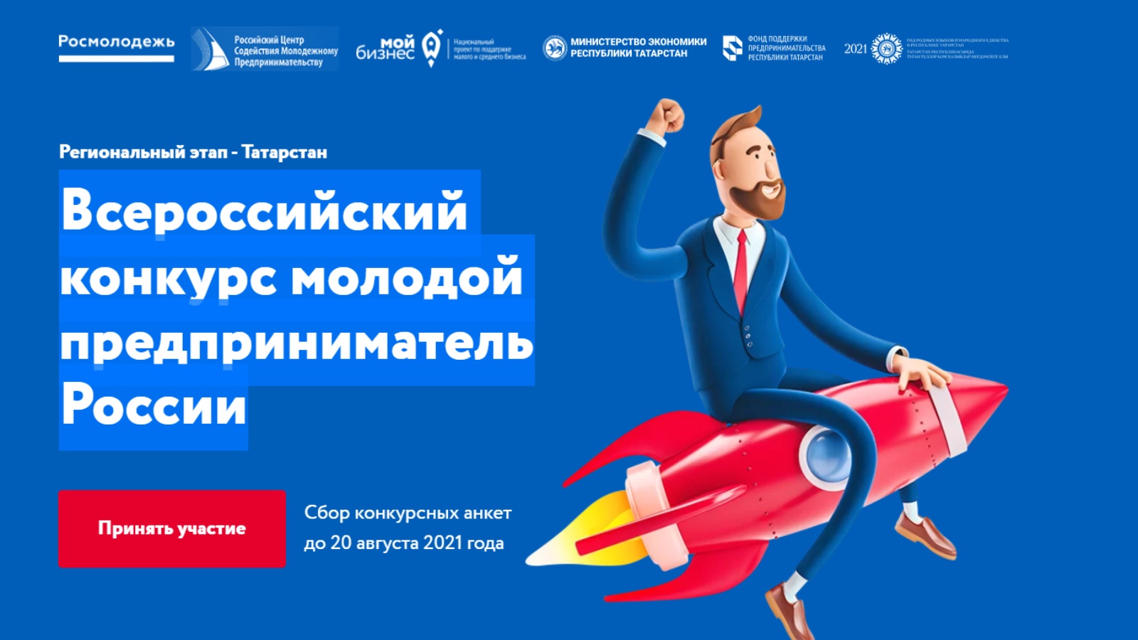 Приглашаем к участию в конкурсе заинтересованных молодых предпринимателей в возрасте от 16 до 35 лет. Вся информация о конкурсе, его положении и сбор конкурсных заявок осуществляется на сайте https://mpr2021.ru/rt до 20 августа 2021 года включительно.