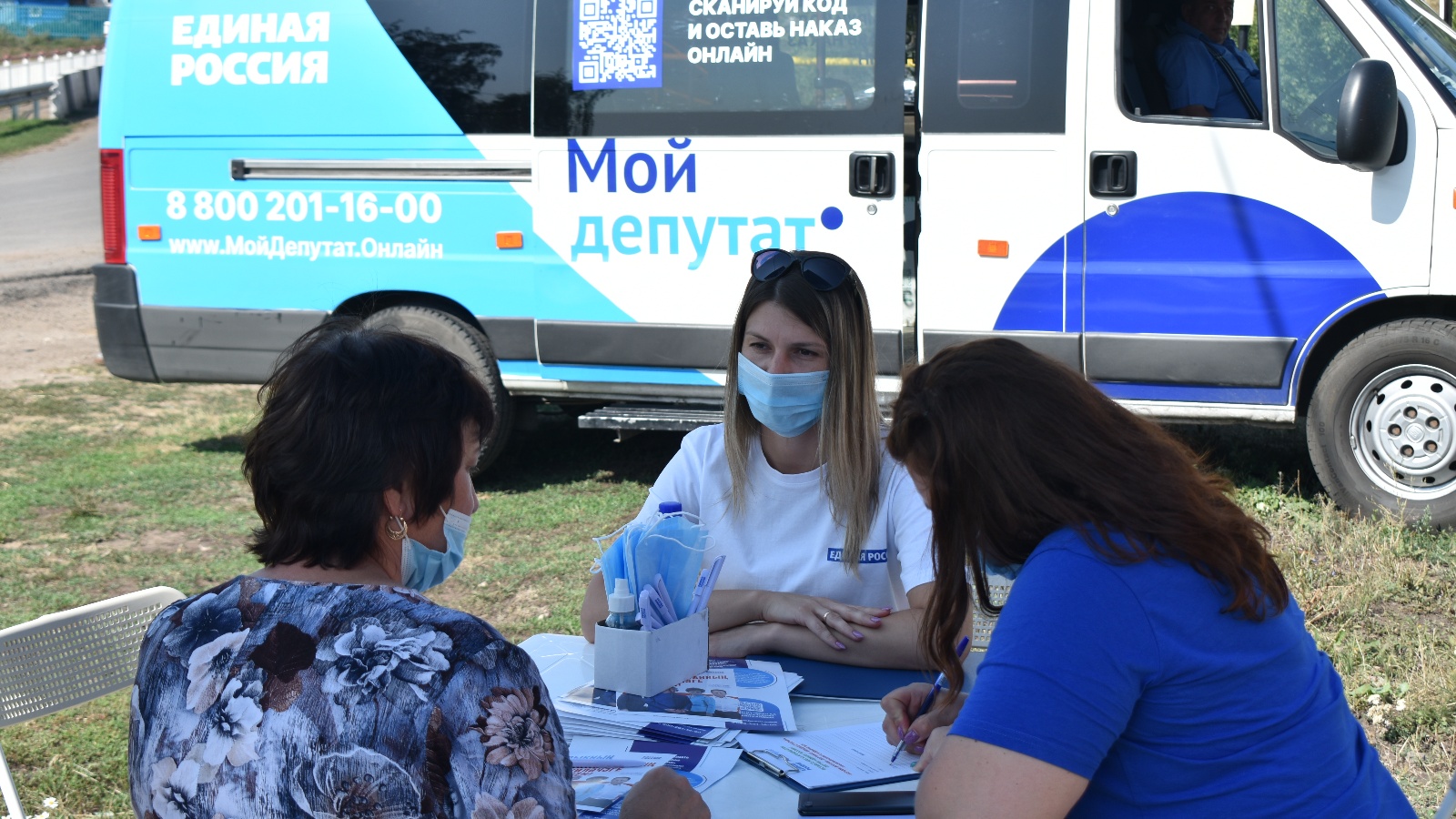 Прием в с.Верхние Лащи и Новые Чечкабы прошел на улице. Рядом с микроавтобусом, раскрашенным в цвета партии, стоял столик, где специалист записывал проблемы и инициативы жителей.