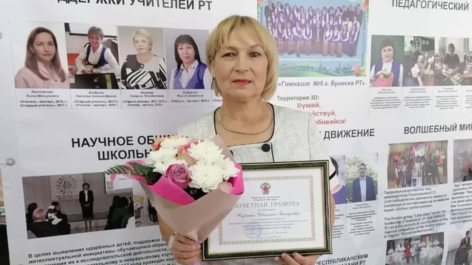 Учитель постоянно совершенствует своё профессиональное мастерство, повышает уровень педагогической деятельности. За значительные успехи в обучении русскому языку и литературе она награждена грамотой «Лучшая в профессии» на Слёте передовиков Буинского муниципального района и нагрудным знаком РТ «За заслуги в образовании».