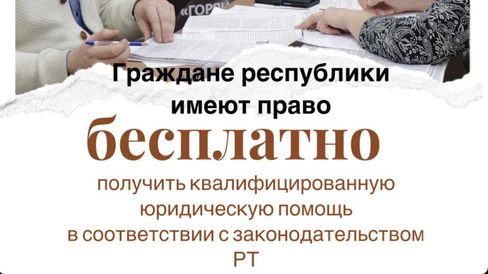 Если вы хотите получить бесплатную юридическую консультацию, запишитесь по телефону горячей линии 8 (843) 22-60-60. Консультации проводятся каждый вторник и четверг.